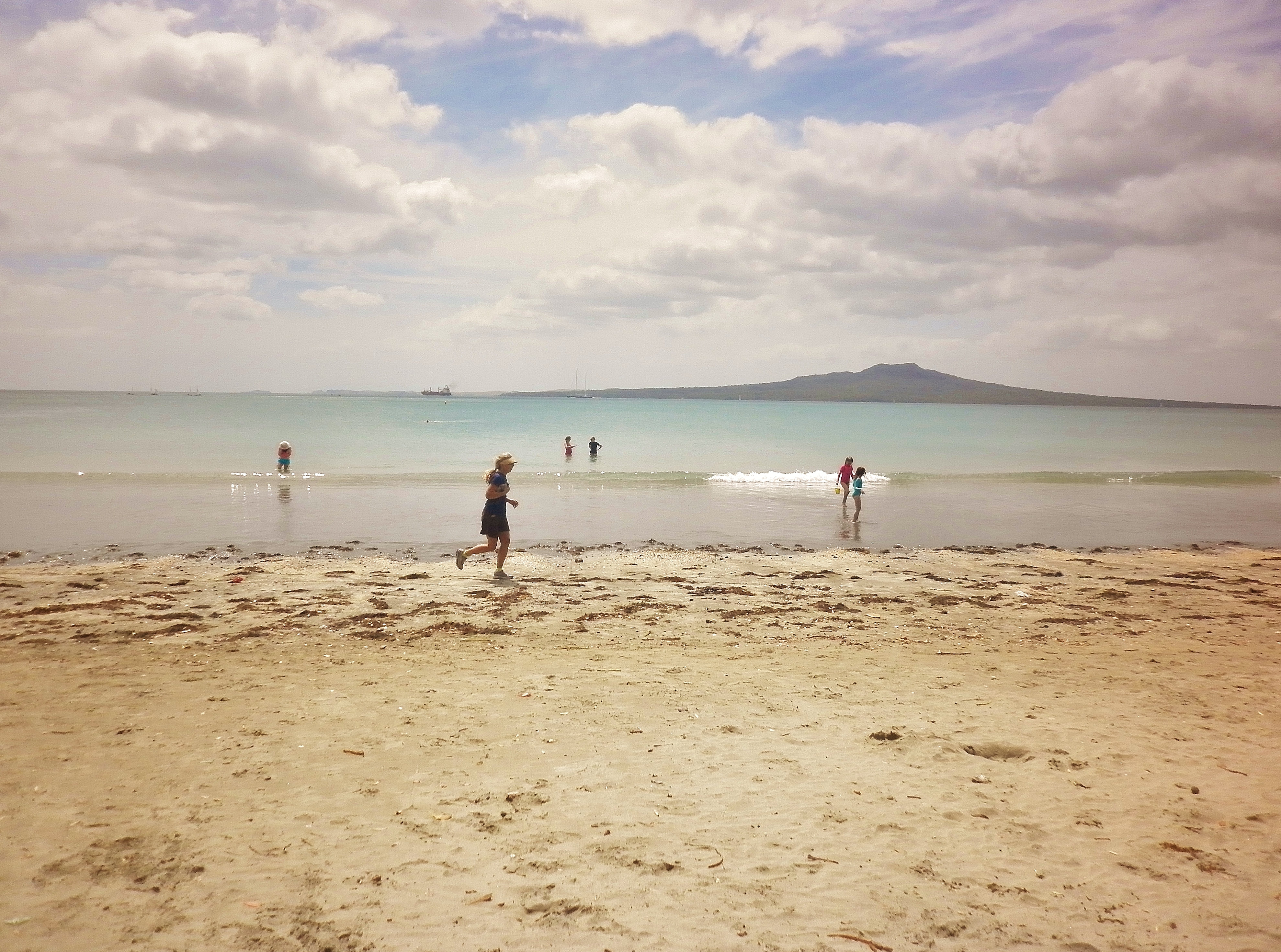 Looking across the Hauraki Gulf at Rangitoto Island from Takapuna beach