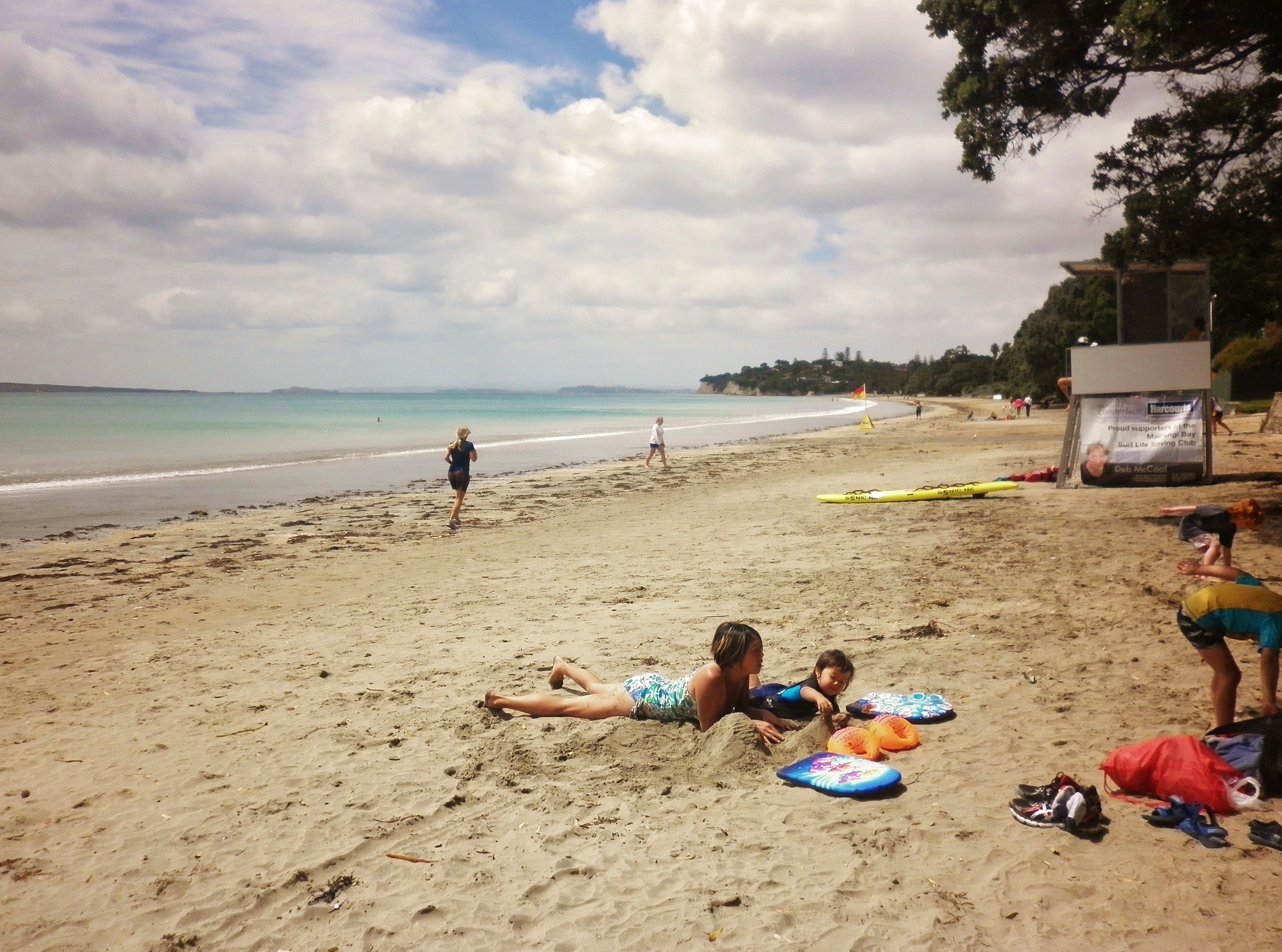 Despite the slightly chilly water it was a lovely sunny day today with an irresistible midday high tide at Point Chevalier beach.