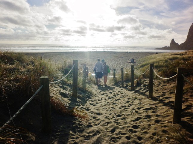 Sun is about to set at Pt Chevalier beach in early April 2015
