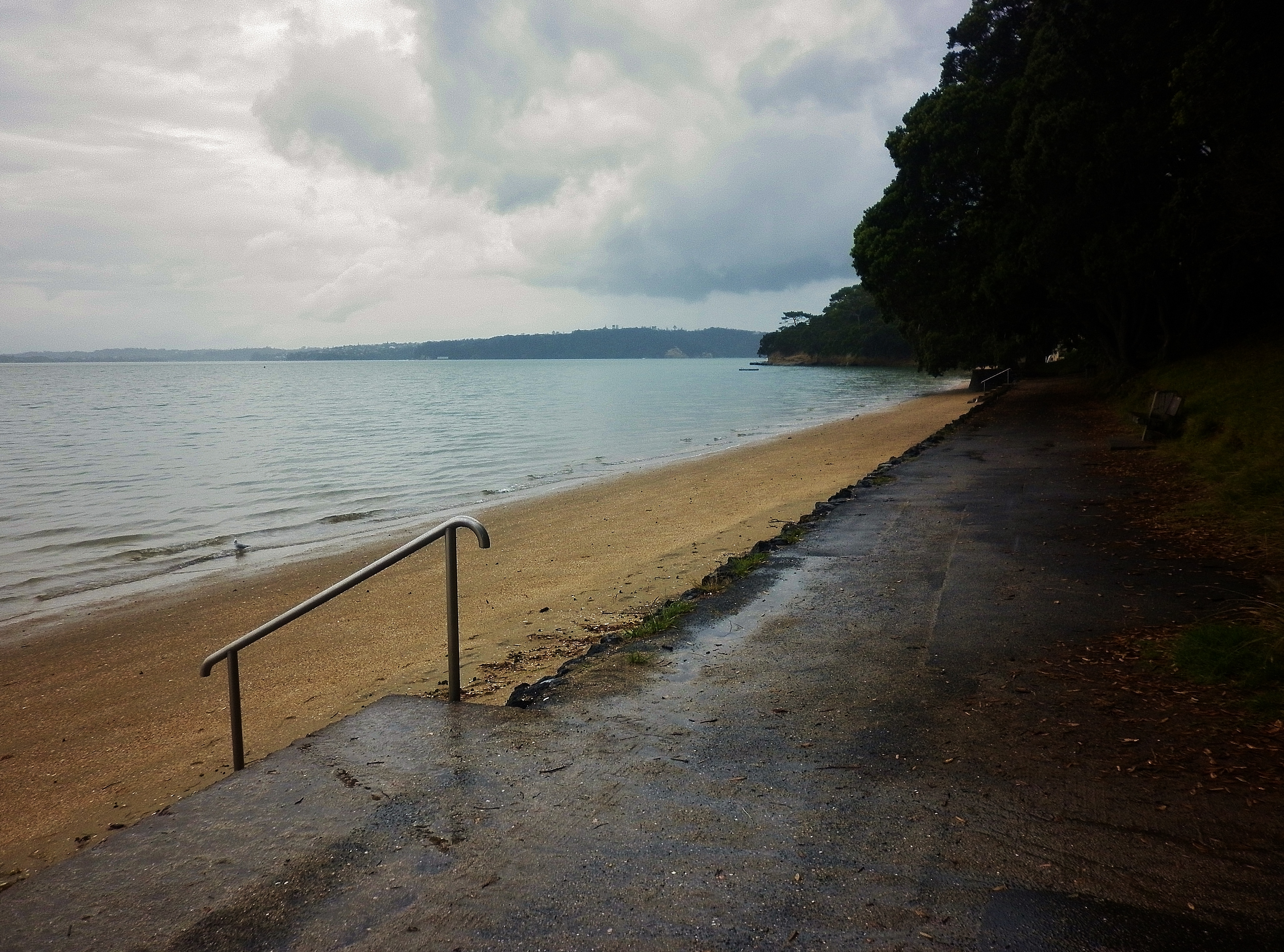 Yes, it was raining when I went to the beach today, which seems to make swimming easier although not many other people seem to agree. And at Pt Chevalier beach it’s not too difficult to keep the towel dry.
