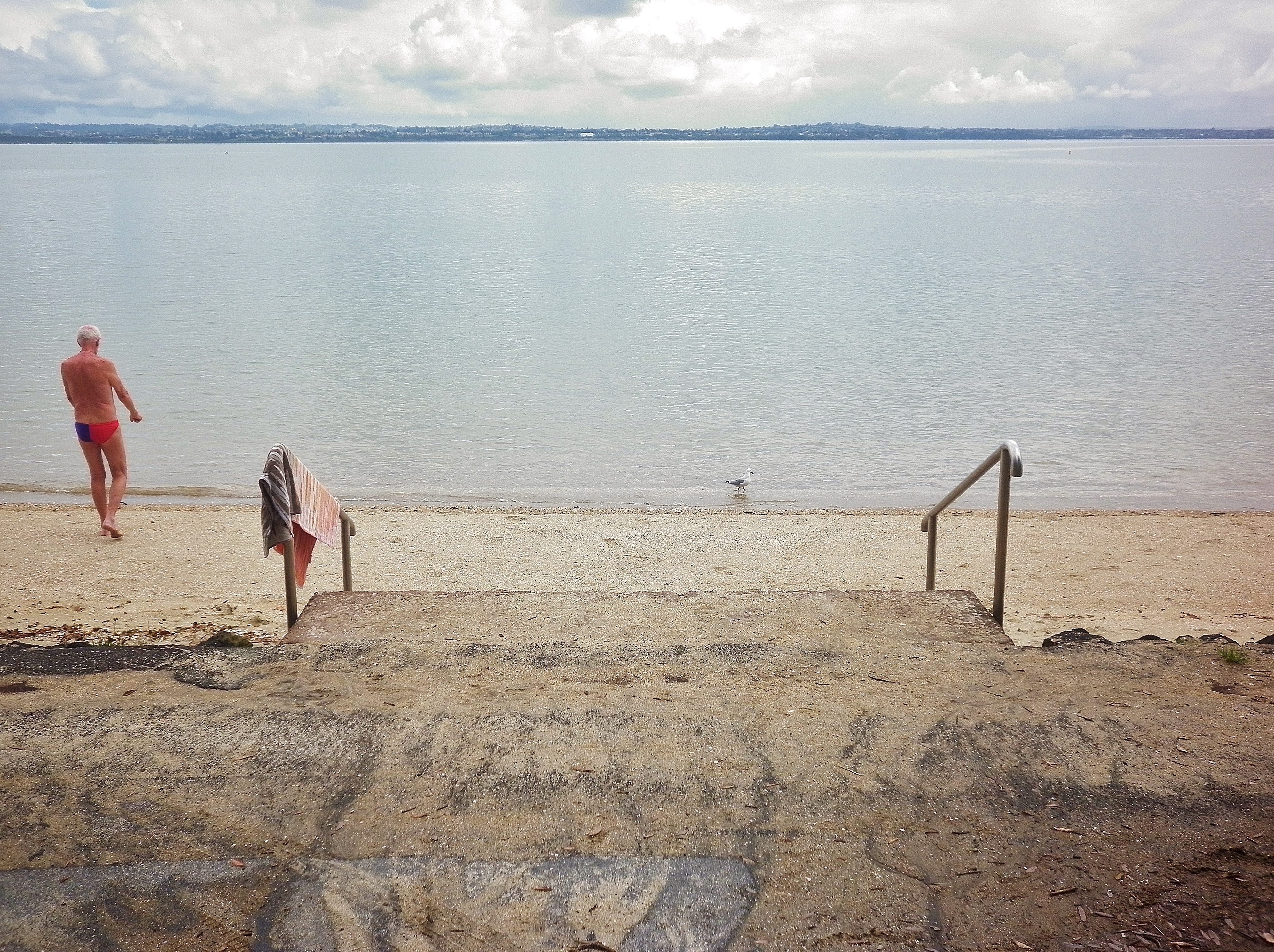 What I do remember from these January swims at Pt Chev beach is that the wind itself isn’t particularly cold, but when combined covering of salt water on bare skin the result is somewhat chilly.