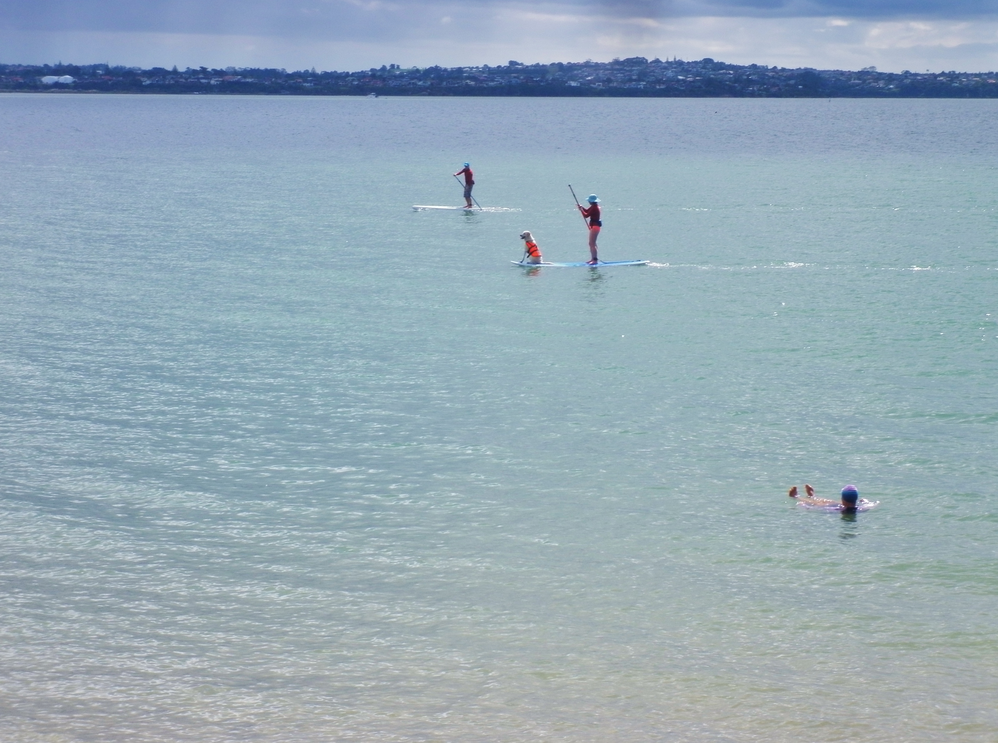 Autumn paddle boarders at Pt Chevalier beach in early April 2015